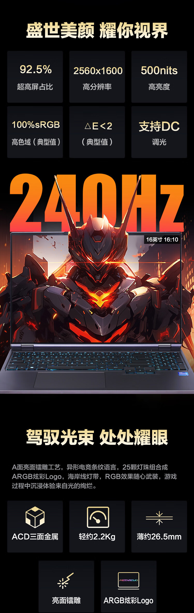 屏幕比例:16:10 屏幕尺寸:16英寸 屏幕刷新率:240Hz