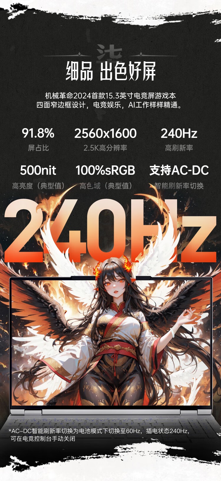 屏幕比例:16:10 屏幕尺寸:15.3英寸 屏幕刷新率:240Hz