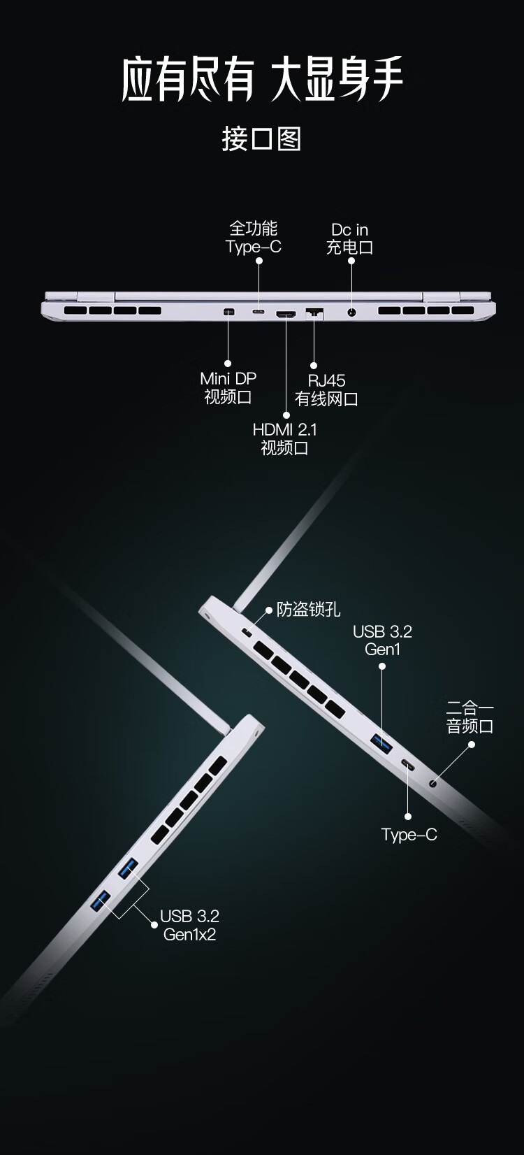 型号:机械革命翼龙15 Pro 无线网卡:双天线Wi-Fi 6E 内存:DDR5 32G